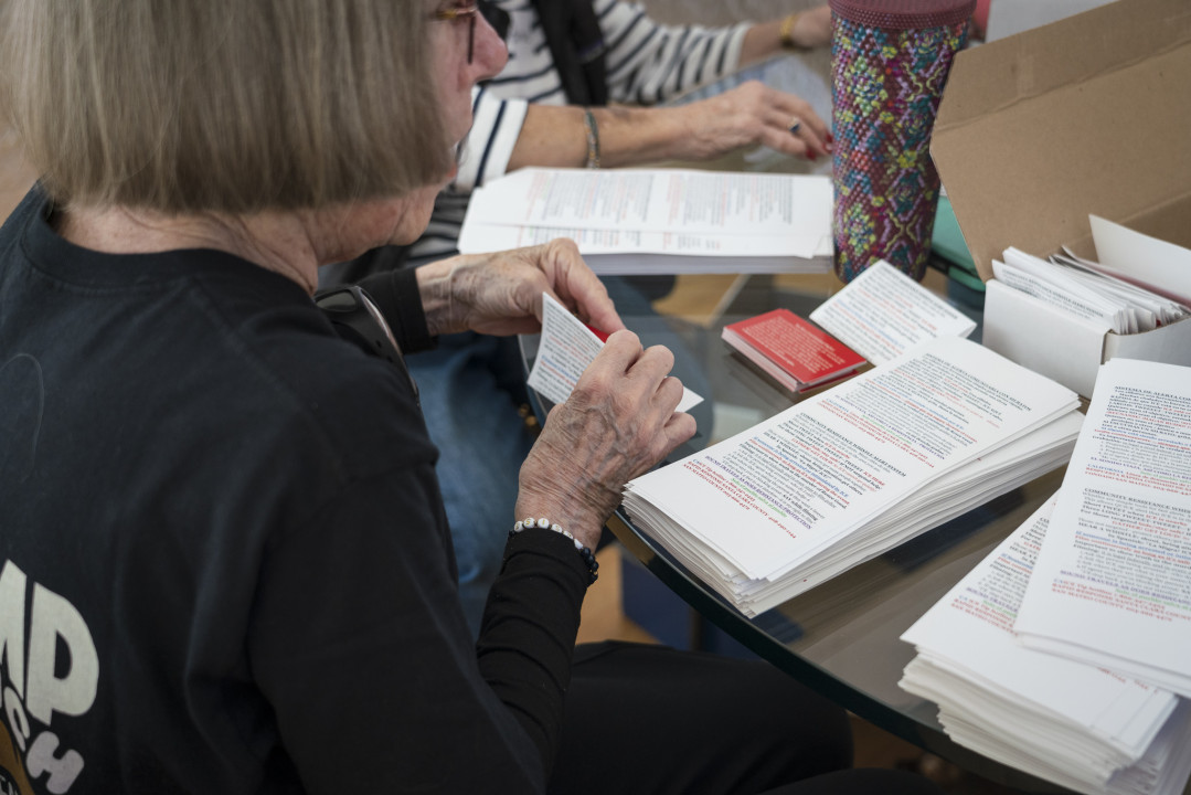 Indivisible Portola Valley has made about 5000 Know Your Rights Kits and aims to make 3000 more at this work party at a private residence.
