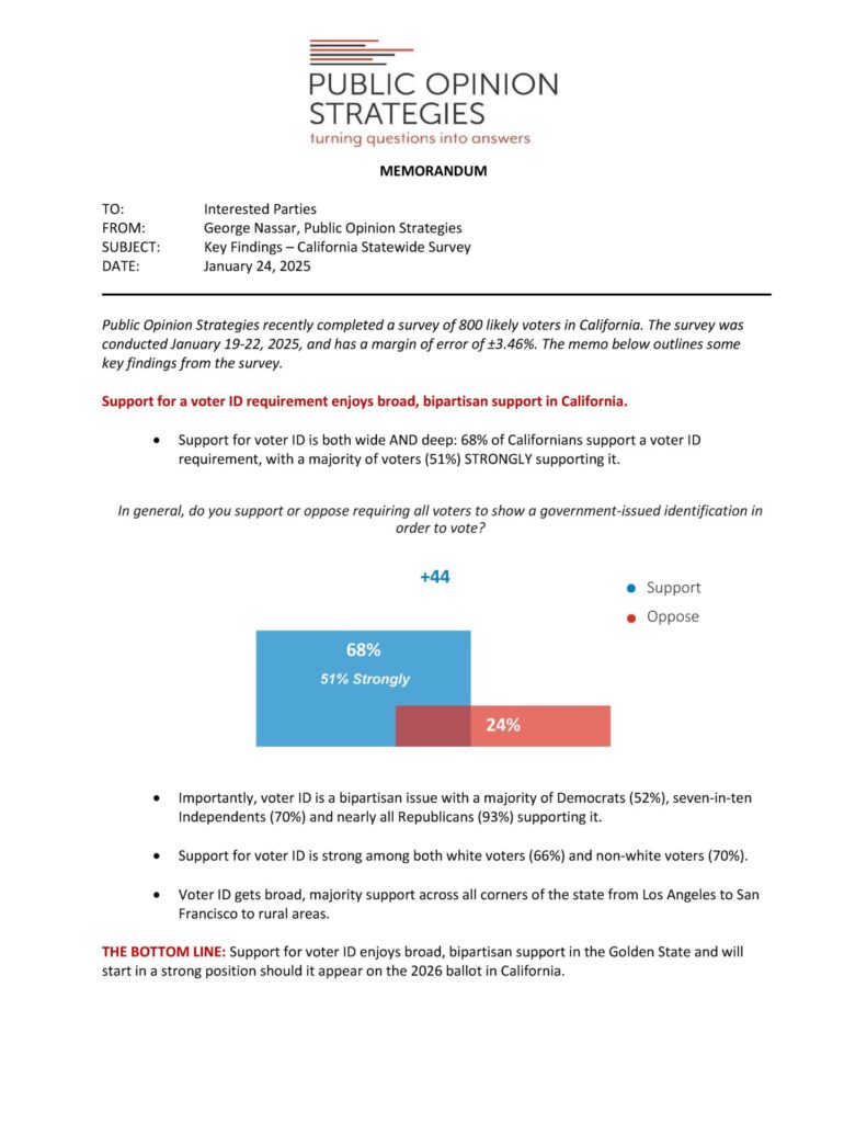 Support for a voter ID requirement enjoys broad, bipartisan support in California.