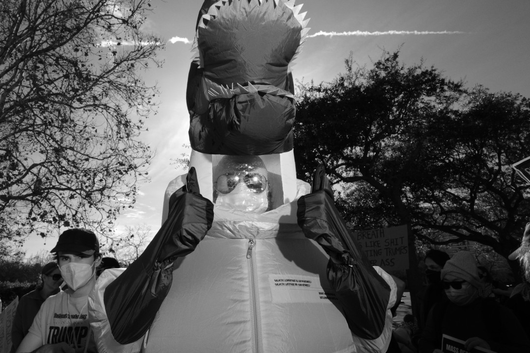 A protest of the actions of ICE and the Trump administration more generally, held near Levi Stadium while the Super Bowl game was taking place there.